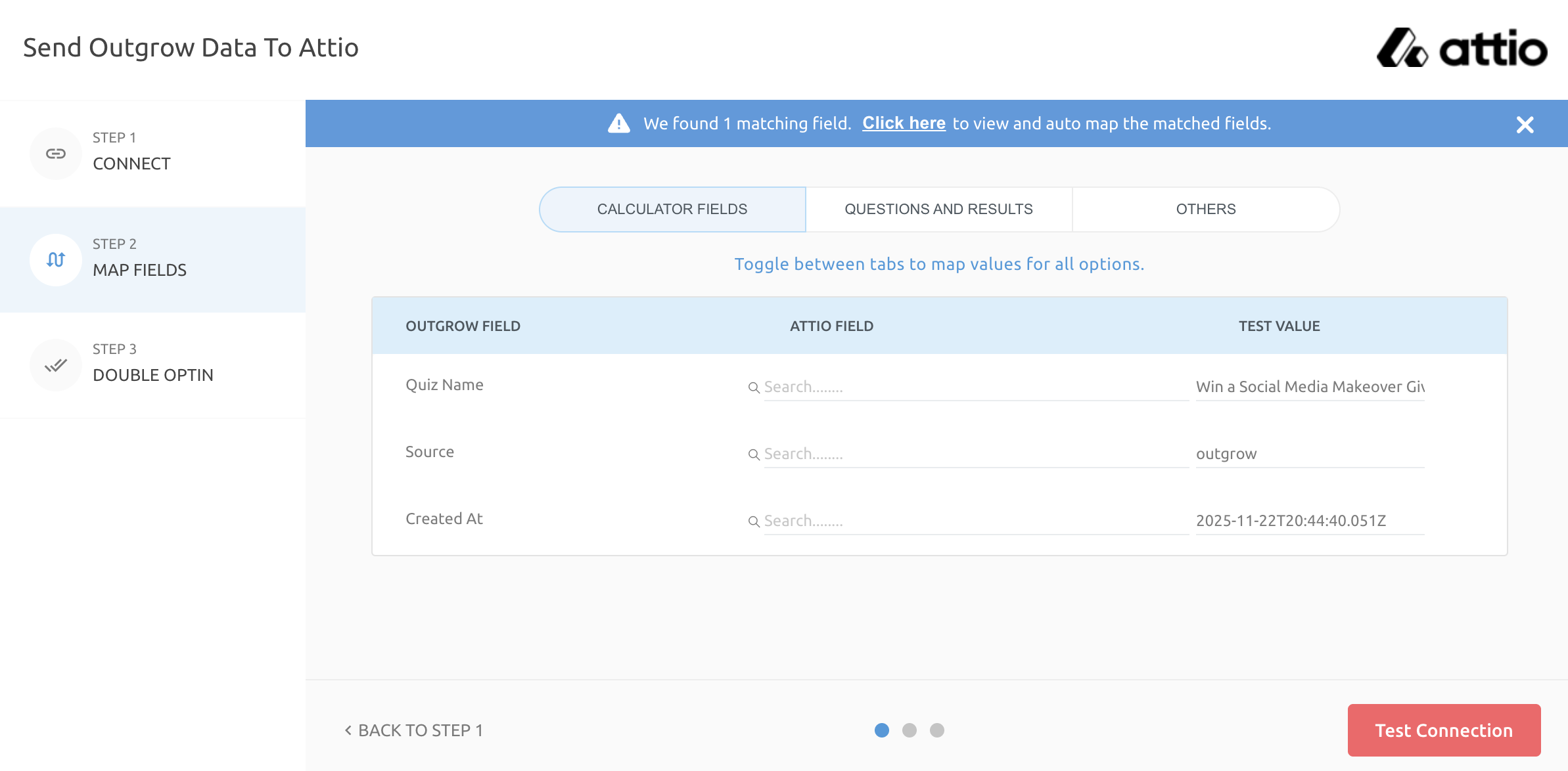 10. Map the respective Outgrow fields with Attio fields to facilitate data transfer.