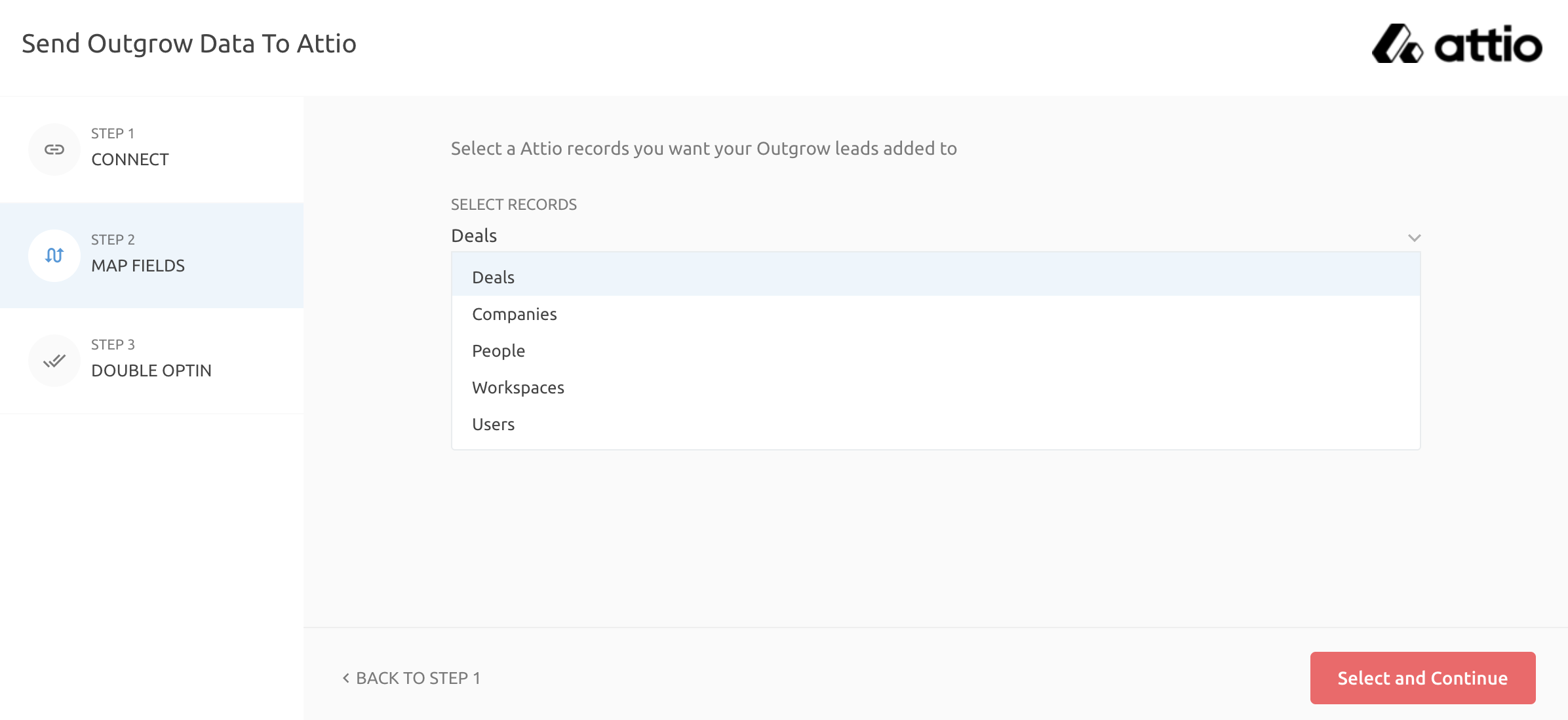 8. Then select the Attio records to which you want your Outgrow leads added.