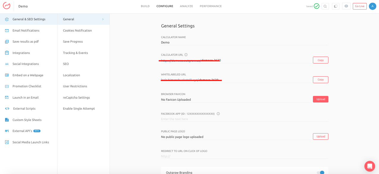 - In your Outgrow account, open the specific content piece (calculator, quiz, etc.) that you want to integrate with Adobe Launch.