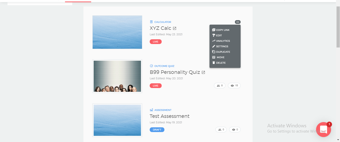 A. Clicking on the Options (3 horizontal dots) Icon on any content card reveals actions that can be performed on it directly from your Dashboard.
