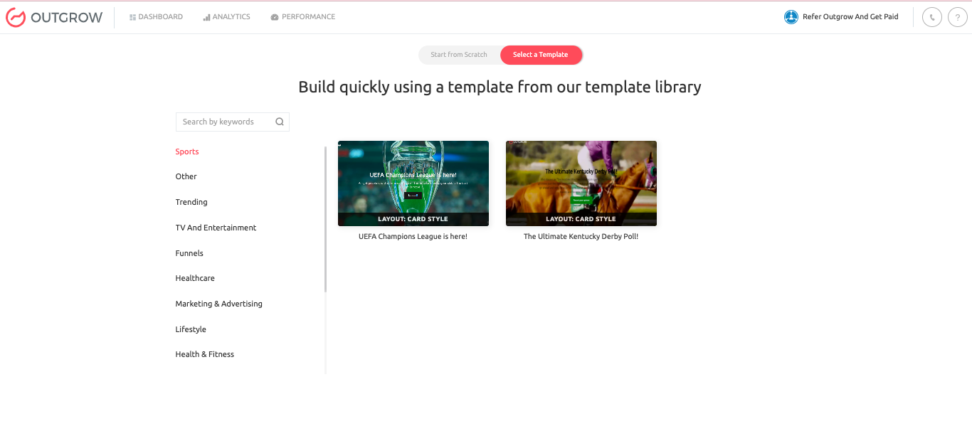 2. Select whether you want to build a poll using a fresh design layout or a premade layout from Outgrow's library.