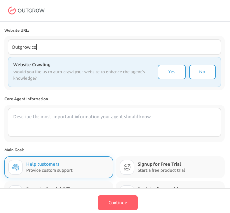 C. Step 3: Select the Main Goal: Under the Main Goal section, you will select the primary objective of your AI Agent. The available options include: